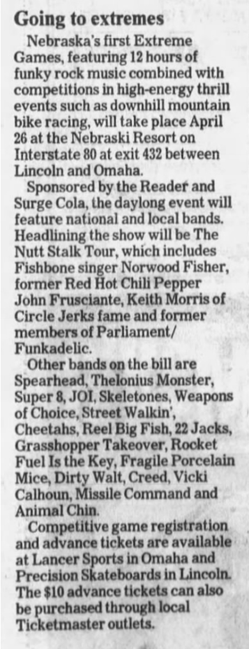 Other Acts: JOI, Blowfly, The Skeletones, Super 8, Weapon of Choice, The Street Walkin' Cheetahs, Thelonious Monster, Trulio Disgracias