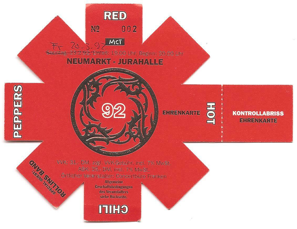 Rescheduled to March 20, 1992 due to the band being offered to play on "Saturday Night Live" on February 22.
