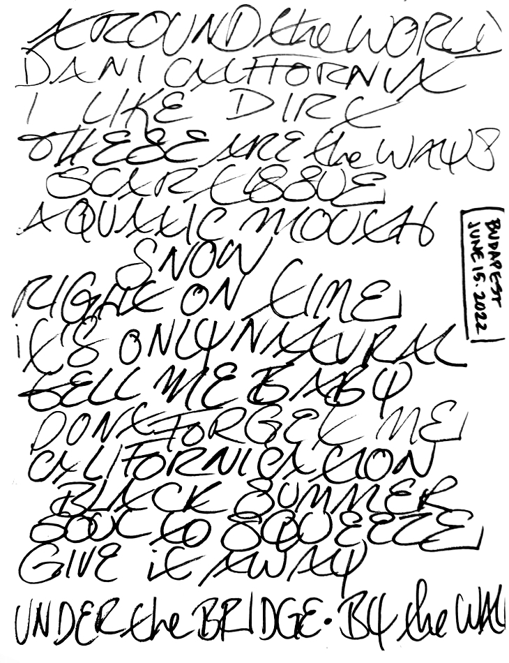 “Under the Bridge” is seen on the handwritten setlist but was skipped.