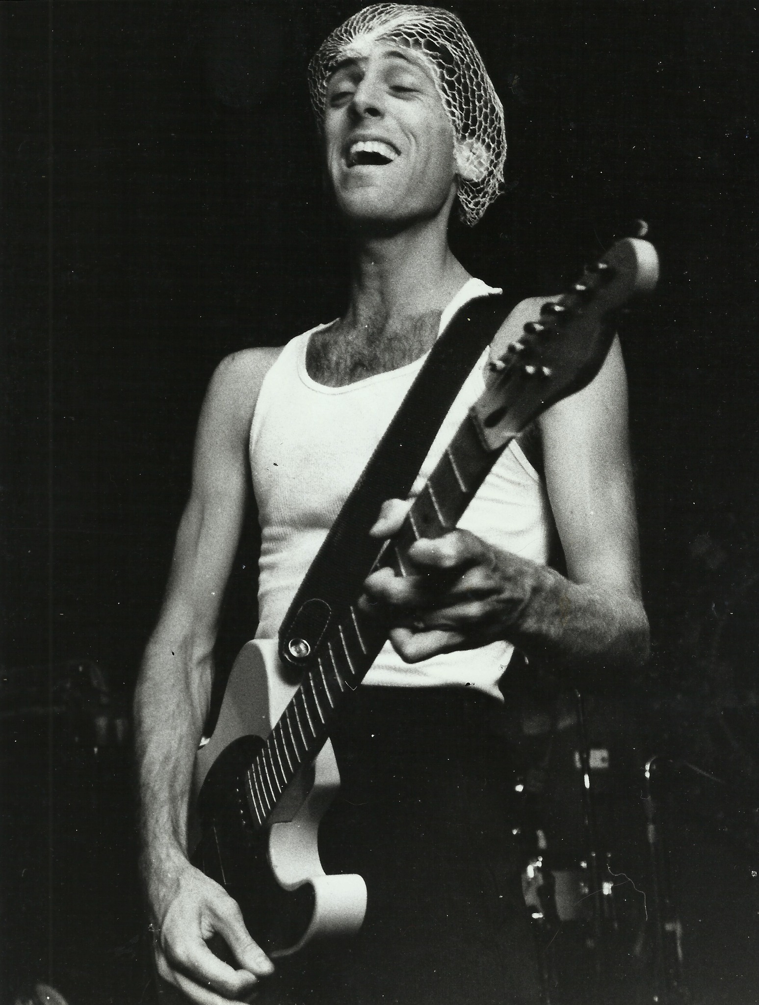 Puffing out his chest like a frog puffs out its neck Flea responded, “We’re smarter than everybody so naturally we’re gonna’ get big and famous.” You can really tell how smart Flea is by watching him play the funky bass. His brains are actually located in his callouses on his fingers which have to keep moving in order to keep his cosmic knowledge from spilling out his mouth. I bet he knows all the dead baby jokes as well as all the techno-trash bands which should have -fuck” in their name; i.e. “fuck Wham!, fuck Duran Duran, fuck Kajagoogoo, fuck the Jacksons….” On and on he went.